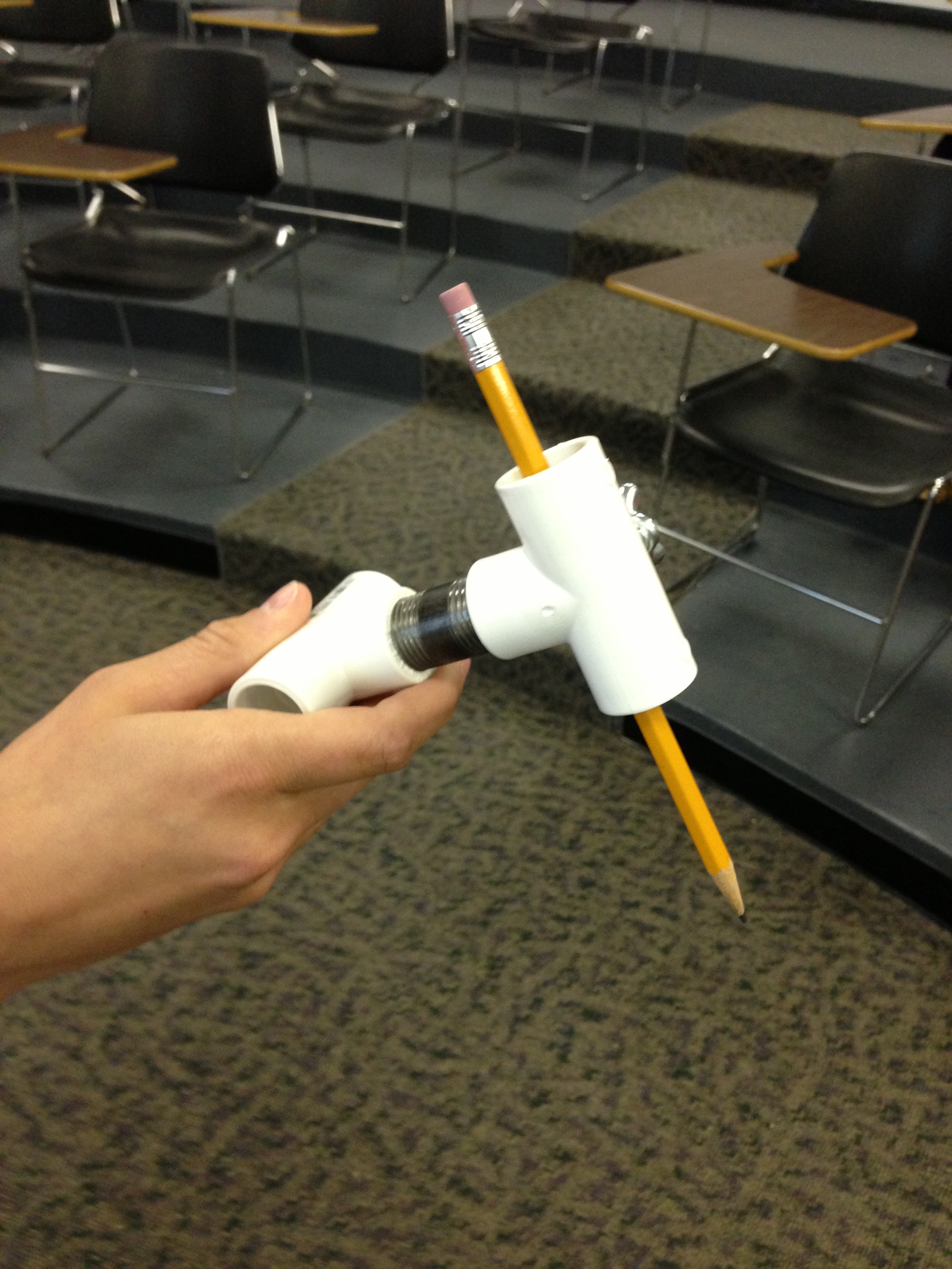 This pencil holder was created out of PVC pipe and a small thumb screw to secure the pencil.