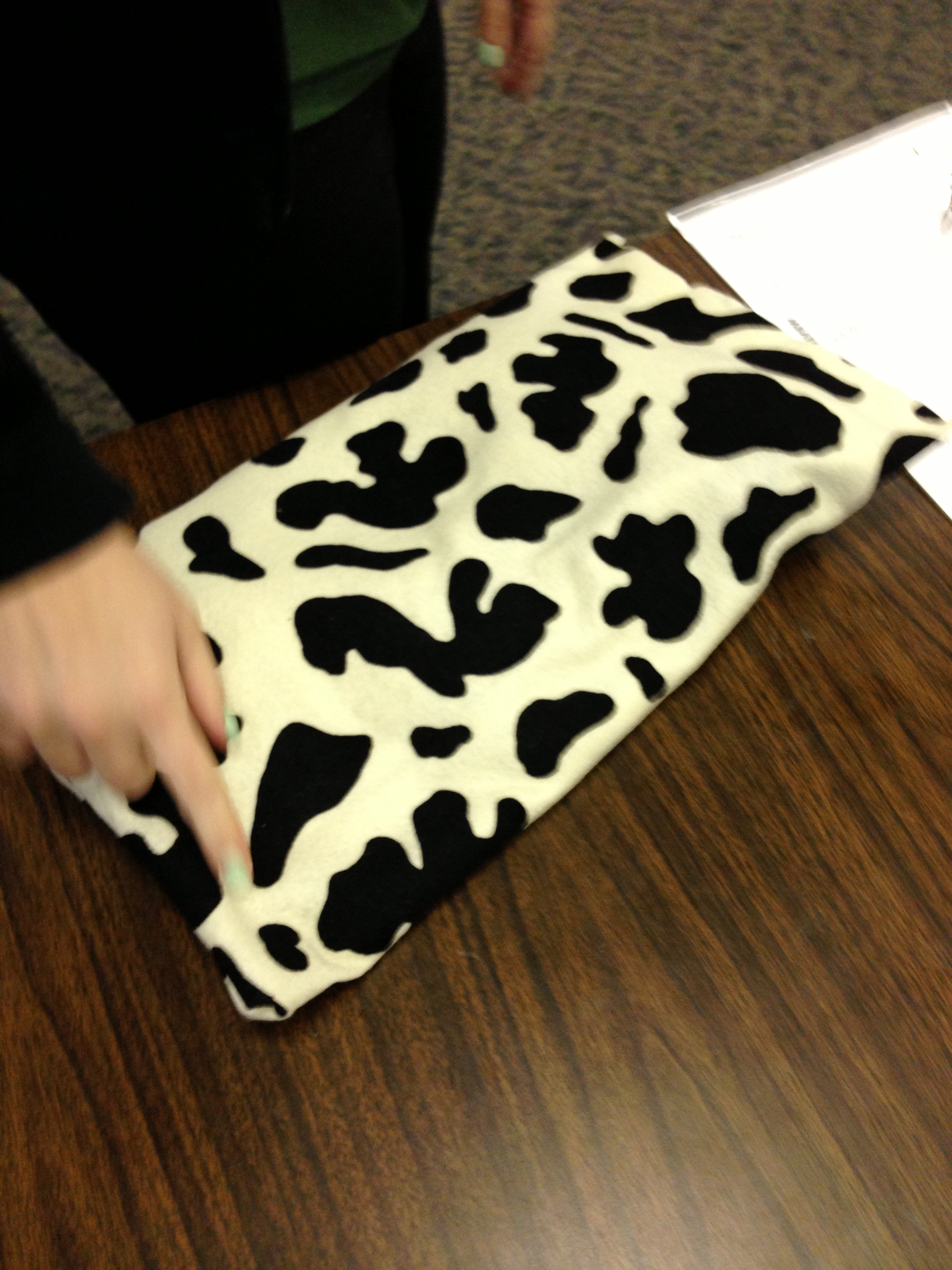 Cushion filled with sand to provide pressure on student’s lap while seated at desk.